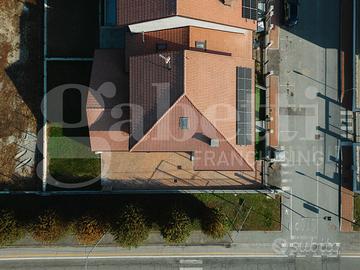 Libera su tre lati, inserita in un lotto di circa 350 mq, questa abitazione unisce modernità e concretezza. Non è una scenografia: è un luogo progettato per la vita reale. Lo si percepisce dalla doppia autorimessa di 40 mq collegata internamente alla casa: uno spazio ampio, ordinato, automatizzato, che semplifica le giornate e regala quella comodità che una famiglia cerca.