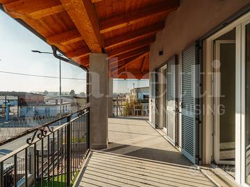 Una scala interna in muratura conduce al piano superiore: tre camere ben distribuite, un disimpegno che respira, e una stanza con accesso esclusivo al terrazzo coperto, perfetto per chi desidera uno spazio tutto suo, al riparo, lontano dal rumore.