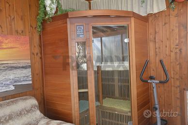 Dimenticate lo stress quotidiano: questa villa ospita unesclusiva area wellness interna, con una saletta confort, ma alla quale si può accedere anche dall'ingresso a lato della veranda, che racchiude una piscina , completata da una sauna rigenerante, un angolo palestra e servizi dedicati con doccia. Il lusso della cura di sé, a portata di mano 365 giorni l'anno.