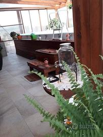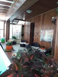 Una veranda chiusa (giardino d'inverno) che funge da ponte tra interno ed esterno.