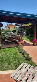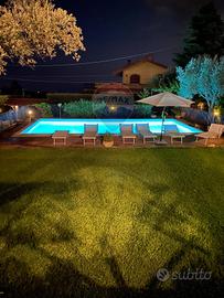 Il giardino, estremamente curato, ospita una splendida piscina di 10x5 metri completa di copertura, sei alberi di ulivo, due limoni, un pesco, un mandorlo e un pompelmo. È presente anche una zona recintata per cani con casotto in muratura.