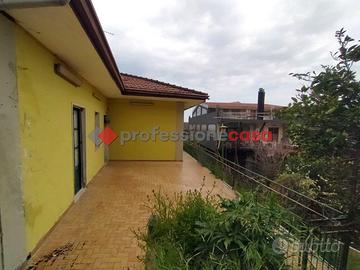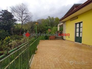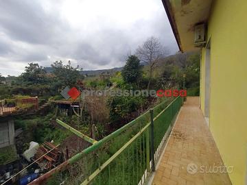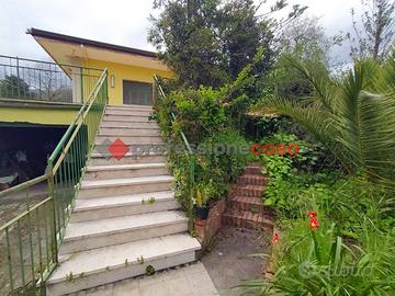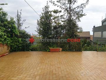 Professionecasa Paesi Etnei propone in vendita a Zafferana Etnea, nelle vicinanze di "Lady Ceramica" ed esattamente in Via Vecchia Sarro, graziosa villetta singola disposta su un unico livello, dotata di due ampi terrazzi con vista mare ed ulteriore spazio esterno. La villetta si estende per una superficie interna di 90 mq così distribuiti: ingresso su corridoio, soggiorno, due camere da letto, una cameretta, cucina media e bagno. All'esterno è presente un'ampia zona carrabile dov'è possibile parcheggiare le auto, una comoda cantina con cisterna idrica di 30mila litri, una scalinata contornata di alberi di agrumi e piante ornamentali, un terrazzo all'ingresso dell'immobile ed uno nella parte retrostante, ed un'ulteriore parte di terreno. L'immobile presenta rifiniture anni '70, dunque sono necessari interventi di ammodernamento interno. Classe energetica G.