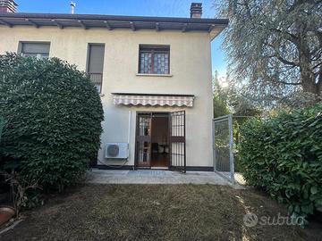 Esternamente, la villetta è dotata di un giardino privato, ideale per momenti di relax, per chi ha bambini o animali domestici, o per chi desidera uno spazio verde da personalizzare.