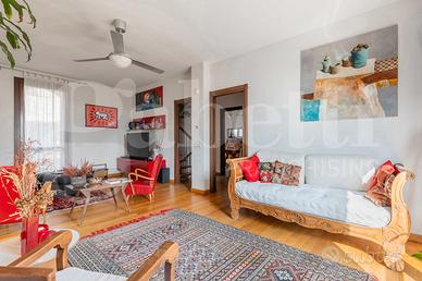 In prestigiosa zona pedecollinare, immersa nel verde e caratterizzata da una meravigliosa vista su San Luca, proponiamo in vendita elegante porzione di bifamiliare del 2008, rifinita in pietra a vista. L'immobile si sviluppa su più livelli ed è così composto: al piano terra ampio e luminoso salone, cucina abitabile con zona pranzo e bagno. Dalla cucina si accede direttamente all'esterno, su un comodo terrazzo ideale per pranzi e cene all'aperto, collegato al giardino privato. Salendo le scale al piano primo troviamo la zona notte caratterizzata dal suggestivo tetto in legno a vista, che dona calore e charme alle tre camere da letto e all'ulteriore bagno. Al piano interrato spazioso ambiente pluriuso con camino, bagno, cantina e autorimessa di circa 40 mq. Completa la proprietà un ampio giardino privato che circonda l'abitazione, ideale per momenti di relax e convivialità all'aperto. Soluzione ideale per chi cerca tranquillità, comfort e una posizione esclusiva a pochi minuti dalla città.