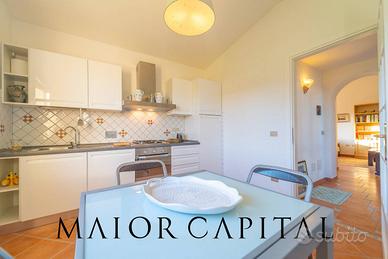 Al piano terra troviamo un ampio soggiorno luminoso con affaccio su una veranda panoramica, cucina separata, una camera matrimoniale, una camera singola e un bagno con vasca.