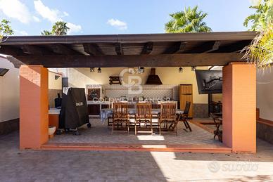 Rif: CBI038-2915-301650 Classe energetica: G - EPglnr: 175.00 kWh/m² Villa elegante in vendita a Palermo - Viale Michelangelo Prestigiosa villa in vendita a Palermo, situata in una zona residenziale esclusiva e riservata, ma al tempo stesso allinterno della città, vicina e ben collegata a tutti i principali servizi e punti di interesse. La proprietà, di circa 390 mq, si sviluppa su due livelli ed è circondata da un meraviglioso giardino di circa 1.500 mq con piscina e pozzo privato una vera rarità in città. La villa presenta rifiniture di pregio: al piano terra troviamo un elegante parquet in perfette condizioni e porte in legno massello di Pino di Svezia, realizzate su misura. Dispone di doppio ingresso quello principale conduce a un ampio salone doppio con veranda luminosa, stufa a pellet e bagno; il secondo ingresso apre su una zona giorno con cucina a vista. La zona notte comprende tre camere matrimoniali e un bagno aggiuntivo. Gli infissi sono in PVC con doppi vetri, dotati di zanzariere e persiane in alluminio. Comode scale collegano il piano principale alla grande taverna, composta da quattro spaziosi locali, bagno, ripostiglioe box doppio. Una proprietà signorile e di grande fascino, ideale per chi cerca comfort, privacy e qualità abitativa: Unoasi di pace nel cuore della città.
