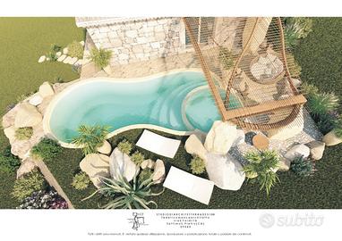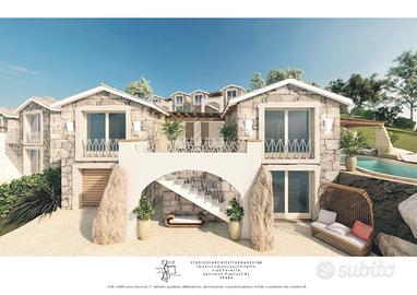 La villa sarà realizzata su un lotto di circa 550 mq ed avrà un ampio giardino su tre lati con posto auto e piscina privata dotata di vista mare.