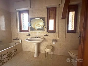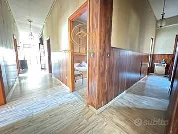 Al piano primo il maestoso appartamento composto da un grande salone di rappresentanza comunicante con un terrazzo interamente coperto,camera padronale, altre due camere da letto, cucina e adiacente vi è un ampio terrazzo con barbecue esterno interamente in cemento, due bagni, lavanderia, e studio.