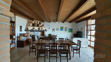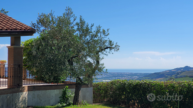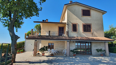 Posizionata in zona panoramica, verde e riservata da dove è possibile ammirare gran parte della provincia di Ascoli Piceno e di Teramo, con pregevole vista mare e monti, la villa di recente ristrutturazione è stata costruita nel 1980 su tre piani per un totale di 500 mq. Ha 16 stanze e 4 bagni, tre camere matrimoniali e una singola, 2 cucine e un retrocucina con punto di prelievo del gas, forno a legna e legnaia. Al pianoterra seminterrato troviamo un garage da due posti auto con serranda automatica dal quale si può accedere direttamente al rustico del pianoterra pavimentato in cotto con termocamino collegato a pompe di calore che funzionano anche tramite caldaia a metano. Il rustico è composto da cantina, salone, cucina, retrocucina, legnaia, bagno e camera adibita a palestra. Attraverso una scala interna a chiocciola è possibile accedere al primo piano che ha un ingresso indipendente direttamente dal giardino. È composto da ingresso, salone panoramico, cucina, camera ad uso ufficio, bagno, camera singola e camera matrimoniale con bagno. Al secondo piano troviamo un bellissimo salone panoramico con caminetto, bagno e una camera matrimoniale. Completano la proprietà 350 mq di giardino con prato, piazzale panoramico, e circa 2500 mq di terreno coltivato. Sono presenti alberi da frutto: mele, pere, ciliege, fichi, prugne, cachi e circa 20 piante di olivo. Inoltre ci sono 3 cisterne interrate, una per l'acqua potabile da 2500 litri, due in cemento armato di circa 3mx3mx3m per le acque nere e la raccolta di quella piovana.