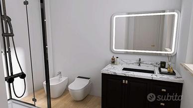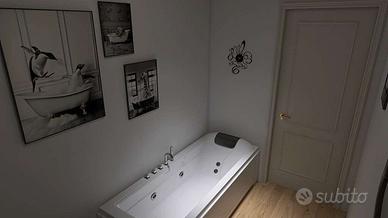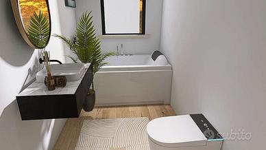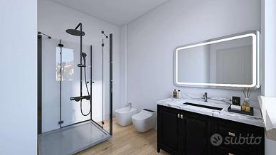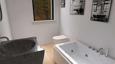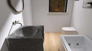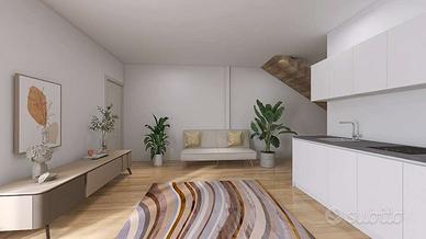 Al piano terra si apre una luminosa zona giorno open space con accesso diretto allesterno, dove si trovano una comoda area di manovra, pavimentazione drenante e un giardino privato di oltre 80 mq, piantumato e ben delimitato da siepi. A completare il piano, una spaziosa lavanderia, un bagno finestrato e ufficio/studio con servizio dedicato, completamente separato dalla parte abitativa.