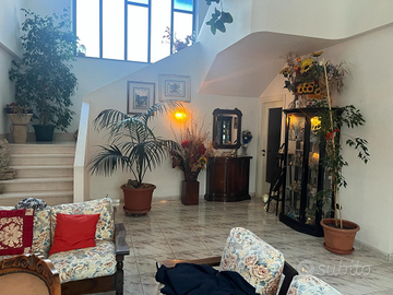 Villa di 360 mq a Pianella disposta su due livelli più taverna. Terreno circostante di circa 300mq. La casa al piano terra ha un salone con camino, un bagno di 9 mq, cucina di 20mq, lavanderia, studio, ripostiglio. Al primo piano abbiamo 4 camere matrimoniali, 2 da 25mq e 2 da circa 50, in oltre ci sono 2 bagni da 9mq l'uno, uno con doccia e l'altro con vasca. La particolarità della casa è la balconata interna che rende ancor di più la sensazione dello spazio che si ha a disposizione.