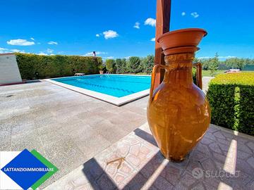 - **Piscina 14x7** con zona relax, chiosco, e una piattaforma in cemento perfetta per grandi eventi.