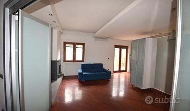 Piano Rialzato: composto da un appartamento di circa 160 mq abitativi, oltre a 100 mq di terrazzo e 20 mq di balconate. L'appartamento è così distribuito: ingresso in soggiorno, cucina abitabile con zona tinello e camino, studio, tre camere da letto (di cui una con cabina armadio e bagno privato), ripostiglio, ampio bagno con zona antibagno. Ottime rifiniture, con parquet in tutte le stanze, infissi a taglio termico, allarme volumetrico e perimetrale, riscaldamento autonomo; APE in fase di rilascio.
