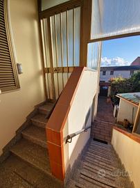 Una scala interna ci introduce alla soluzione abitativa al primo piano composta da: disimpegno, doppio living con sala-pranzo ed attigua cucina abitabile, bagno, lavanderia, camera matrimoniale e camera. Due ampi balconi completano il primo piano. Una scala posta nella zona del dimpegno, ci porta al terrazzo panoramico.