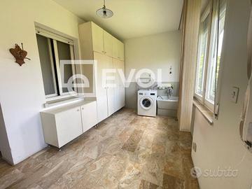 Generosi spazi li ritroviamo nel seminterrato dove, oltre al garage, è stata realizzata una taverna con fogolar, una seconda cucina di servizio ed un bagno.
