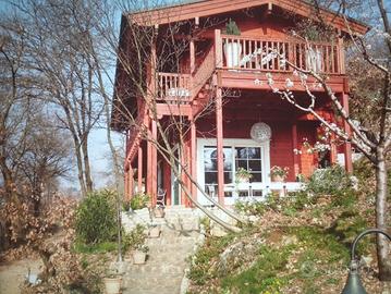 Vendo villa prefabbricata tutta in legno completa di serramenti porte finestre si compone dei due livelli, zona giorno piano terra zona notte piano superiore due bagni già smontata, pronta da da montare con manuale dí montaggio.