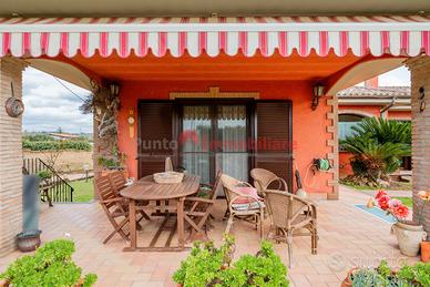 Due Ville Bifamiliari di totali 350 mq circa disposte su 2 livelli fuori terra, il tutto in un contesto prestigioso e riservato dove la cura dei dettagli sia per gli interni che per gli esterni, rende unica tutta la proprietà donandole un'atmosfera elegante e confortevole, ideale per chi ricerca, non una semplice residenza, ma un'esperienza di vita esclusiva immersa nel verde e nella tranquillità che solo la campagna può offrire, a soli pochi minuti dal centro abitato e dai principali punti di collegamento come Roma, Civitavecchia e a 10 minuti dalla stazione ferroviaria di marina di Cerveteri. La distribuzione degli spazi è armoniosa e ben bilanciata tra interno ed esterno; Grandi portici e giardini permettono di vivere momenti perfetti di convivialità all'aperto, mentre all'interno, le zone giorno, molto ampie e luminose, hanno magnifici vetrate e camini che regalano calde atmosfere, nonché saloni e cucine che si prestano ad accogliere tanti ospiti. Ogni villa ha dai 2 ai 3 bagni in muratura dotati di docce e vasca idromassaggio, 3/4 camere matrimoniali, lavanderia e portici. L'attuale divisione delle ville può ospitare comodamente più famiglie in quanto i 2 piani oltre ad essere collegati dall'interno, hanno entrate indipendenti con portoni blindati. Al Grande giardino, di circa due ettari, verdeggiante e ben curato, con piante ornamentali ed ulivi secolari, vi si accede da cancelli automatici e pedonali. L'intera proprietà si presta anche a diventare una struttura ricettiva in quanto a cornice della villa vi è una parte esclusiva dedicata al relax e al divertimento totalmente indipendente dalla proprietà principale, con piscina 12x6 mt, angolo doccia e wc e con giardino ad suo esclusivo, nonché un grande porticato con cucina a vista. Uno spazio unico per godersi momenti estivi e primaverili indimenticabili, perfetto per feste e momenti di condivisione adiacenti la struttura principale ma allo stesso tempo indipendente e riservato.