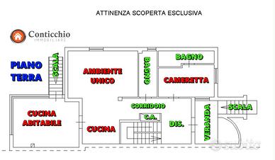 ?Piano Terra: ambiente unico con cucina, cucina abitabile con camino, cameretta con bagno, bagno e veranda.