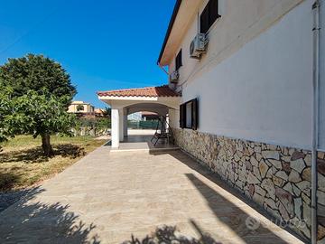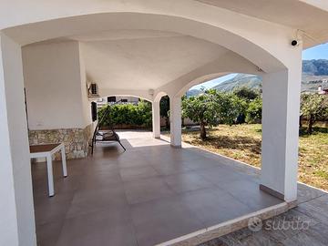 In zona Altavilla Milicia, precisamente in via Chiesazza Sperone 31, proponiamo in vendita una splendida villetta indipendente di circa 150 mq interni, circondata da ben 800 mq di giardino, ideale per chi desidera vivere immerso nella tranquillità senza rinunciare al comfort. La proprietà, disposta su due livelli (piano terra e primo piano), è stata completamente ristrutturata 2/3 anni fa e si presenta in condizioni eccellenti, pronta da abitare e già arredata. Al piano terra l'ingresso avviene tramite un accogliente portico di 45 mq, che conduce ad un ampio salone doppio, una cucina abitabile e un bagno con doccia, con accesso diretto ad un secondo portico di 15 mq, perfetto per vivere gli spazi esterni in totale relax. Il primo piano ospita la zona notte, composta da un disimpegno, tre ampie camere da letto, un secondo bagno con doccia e un terrazzo panoramico con suggestiva vista mare e Isole Eolie, un vero valore aggiunto dell'immobile. Completa la proprietà una comoda dependance di circa 15 mq, ideale come spazio per ospiti o area hobby. La villetta è dotata di 4 pompe di calore caldo/freddo, infissi in alluminio con vetrocamera, pavimentazione in gres porcellanato, impianti a norma, videosorveglianza e accesso facilitato anche per persone con mobilità ridotta grazie allo scivolo per disabili. L'esposizione su quattro lati garantisce luce naturale durante tutto il giorno, mentre l'ampio spazio esterno consente di parcheggiare comodamente 5/6 auto. Il grande giardino di 800 mq offre inoltre la possibilità di realizzare una piscina, rendendo la proprietà ancora più esclusiva e perfetta per vivere al meglio le stagioni estive. Una soluzione completa, elegante e immersa nel verde, perfetta sia come abitazione principale sia come casa vacanze, a pochi minuti dal mare.