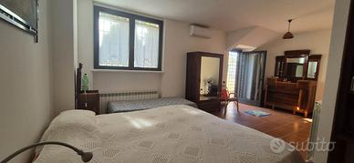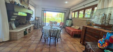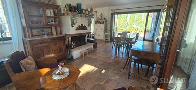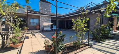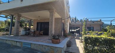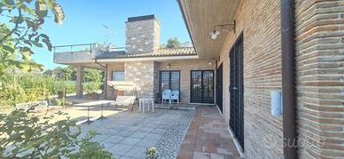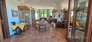 Villa Roselli in Vendita - Un Capolavoro di Architettura e Natura, un gioiello progettato dall'architetta Carmelita Pompilio, pubblicato nel prestigioso libro "Atlante delle donne in architettura-Roma 1920-1975". edizione Artemide del 2024. Immersa nel verde con i suoi colori e materiali di pregio è inserita con attenzione e rispetto nel paesaggio circostante, realizzata nel 1994 su un terreno di 10.710 mq, con coltivazione ad uliveto. Realizzata con materiali di pregio e una struttura in cemento armato, mattoncini fatti a mano e pietra del Morrone, si sviluppa su due piani per un totale di circa mq. 317; al piano terra, con uscite su due portici, ci accoglie tutta la zona giorno con un imponente salone con camino, si continua nell' ampia area cucina attrezzata, anch'esso con il camino davanti a un rilassante salottino, concludiamo con un elegante bagno.