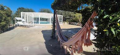 Si procede nella zona notte, scendendo nel seminterrato, da ampie scale e comunque servita dal montascale elettrico, dove troviamo uno spazioso studio, ripostiglio, tre camere e tre bagni. Copertura con un solarium di mq. 180, con accesso esterno da una rampa molto comoda dove si può ammirare un panorama spettacolare, dal verde che lo circonda all'azzurro meraviglioso del mare. Inoltre, le grandi aperture della villa, verso l'esterno, hanno infissi in legno lamellare e grate in ferro battuto. La parte esterna è curata nei particolari, barbecue, un pozzo profondo ml. 66,5 che fornisce acqua abbondante, vari angoli giardini e ampie zone piastrellate attrezzate che offrono un ' oasi di relax, per arrivare all'esclusiva piscina Myrtha di Castiglione, per le sue caratteristiche si può fare il bagno anche in inverno. Nel 2010 sono stati realizzati un impianto fotovoltaico totalmente integrato per produrre energia elettrica e un impianto solare per la produzione dell' acqua calda. Inoltre la villa è dotata di autoclave, d'impianto di climatizzazione con pompe di calore, di videosorveglianza e di allarme.