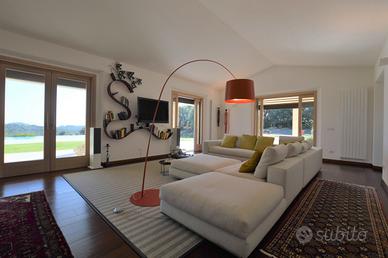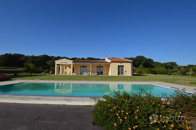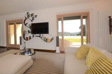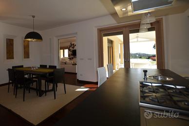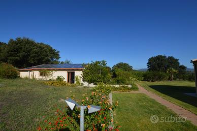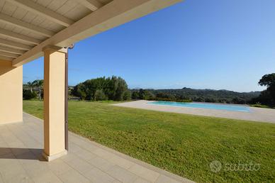 Splendida villa contemporanea immersa nel cuore della Gallura, a pochi minuti dal centro di Telti. Questa proprietà unica si estende su un terreno di circa 52.000 metri quadri e offre una vista mozzafiato sulle vallate e sul mare. La villa principale presenta finiture di alta qualità e dispone di un ampio salone con camino, cucina abitabile, tre camere da letto, cabina armadio, due bagni e verande coperte. Con una superficie totale di 450 mq, la proprietà include anche un deposito attrezzi e box auto di circa centoventi metri quadri. Il terreno circostante è coltivato con ulivi ed alberi da frutta, arricchendo il paesaggio circostante. Inoltre, la proprietà vanta una piscina con solarium per godere appieno del clima mediterraneo della Sardegna. Distanza da Aeroporto 13 minuti.
