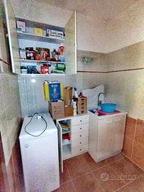 L'immobile si sviluppa su quattro livelli : al piano seminterrato troviamo due box auto molto spaziosi, di cui uno con accesso diretto tramite scale al sovrastante alloggio; in quest'ultimo vi è un bagno , una lavanderia , un locale stireria , una stanza adibita a cabina armadio, una cantina , un locale deposito ed un disimpegno che conduce all'ascensore ed alle scale per i piani superiori.