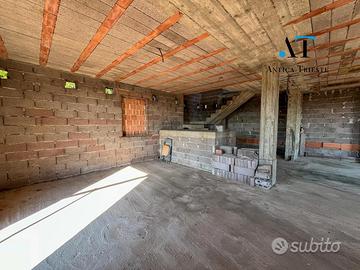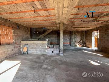 Finiture delle pareti, soffitti e pavimenti al grezzo mentre alcune pareti sono ancora da costruire.