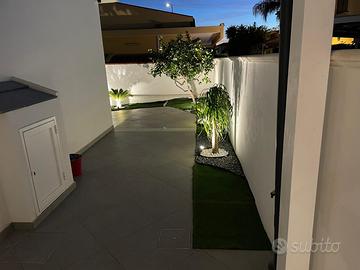 Affittasi SOLO periodo estivo (maggio-settembre) casa vacanze villa San Leone in viale dei pini con una camera matrimoniale climatizzata, una camera doppia climatizzata, un bagno, un'ampia zona cucina/ soggiorno climatizzata, spazio esterno con salottino e tettoia, posto auto, zona barbecue, lavanderia con doccia ecc.. Ideale per una famiglia di 4 persone. Servizi: TV 65" con eventuale attacco satellitare, internet, microonde, forno elettrico per pizze, barbecue, macchinetta per caffè con cialde per tutta la stagione, climatizzatori Wi-Fi, videocitofono connesso per chiamate fuori abitazione ecc..
