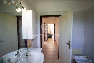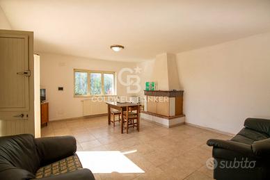 La struttura dispone di 2 ingressi, uno dei 2 con cancello, è inserita in uno spettacolare e curato terreno di circa 11.550 mq, recintato da muretto a secco, in pietra. Il verde terreno è piantumato da tanti alberi da frutta, in particolare agrumeti, circa 350 alberi di arance (vanta quasi tutte le qualità e specie di aranci), inoltre peri, pompelmi, limoni, melograni, ciliegi, pesche, mele, albicocche, castagne, noci, etc. Limmobile è costituito da ampio e luminoso salone di ingresso con camino, 3 stanze da letto ognuna con relativa finestra, cucina abitabile e un bagno. Annesso alla villa un grande garage con relativa rimessa ed inoltre ripostiglio. E dotato di impianto di riscaldamento autonomo con radiatori, alimentato da caldaia utilizzabile con diversi combustibili naturali, quali: legno, pellet, etc.