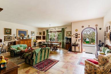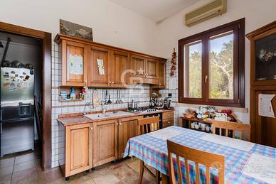 La villa, costruita nel 1999, si sviluppa quasi interamente su un unico livello, il lotto su cui sorge l'immobile è di circa 5300 mq mentre la restante parte è ubicata a pochi metri di distanza ed è composta da ampio salone con camino, cucina abitabile con dispensa, 2 camere da letto, studio e 2 bagni.