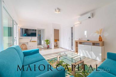 A completare questa splendida proprietà, una terrazza panoramica con vista mozzafiato sul mare turchese della Sardegna e, nelle giornate limpide, sulla Corsica, regalando tramonti indimenticabili.