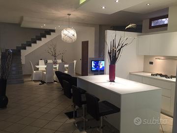 In tranquillo contesto residenziale, vendita di villa a schiera, ubicata a Setteville Nord, finiture di pregio, con impianto di riscaldamento autonomo composto da termocamino EDILKAMIN, pannelli solari e caldaia a condensazione. Tutte le stanze da letto sono climatizzate . Piano terra: ingresso, salotto doppio con termocamino, zona pranzo, cucina, ripostiglio, bagno; Primo piano: camera da letto principale con ampia cabina armadio, bagno, ampia terrazza con portico per relax e attività all'aperto per l'intera famiglia, lavanderia; Secondo piano: due camere da letto di cui una con terrazzo, bagno. L'abitazione ha inoltre un box auto adiacente l'ingresso principale. No agenzie immobiliari.