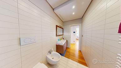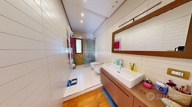 PRIMO PIANO: la zona notte è composta da una camera da letto padronale con bagno finestrato (sanitari sospesi e box doccia) e cabina armadio, una camera da letto dotata di armadio a muro, una cameretta, un bagno finestrato (sanitari sospesi e box doccia), una camera adibita a lavanderia con armadio a muro.
