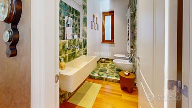 Dal piano terra due preziose scale in marmo conducono, una al primo piano della zona notte ed una in taverna.