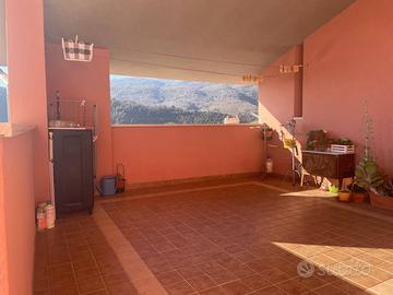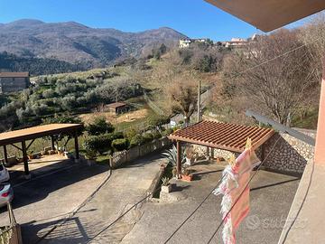 Al piano superiore troviamo la seconda unità abitativa sempre con entrata autonoma e molto più grande, infatti la sua dimensione è di circa 160 mq. E' composta di due livelli, zona giorno da ampio salone con camino, salotto/tinello, bagno, una camera da letto. La zona notte al piano superiore si compone di due camere da letto, bagno, terrazzo di 50 mq.