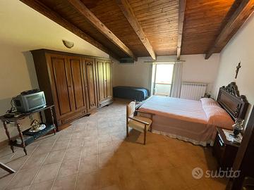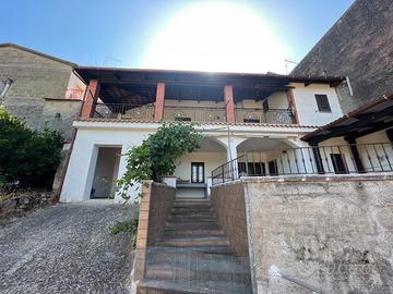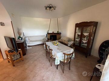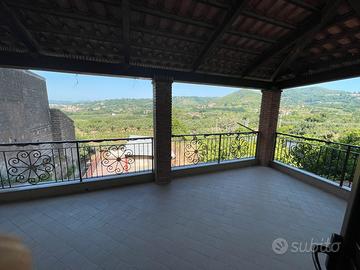Dalla strada principale, tramite rampa si puo' accedere direttamente al garage fuori terra di circa 66mq (usato per parcheggio o deposito), continuando nella salita si ha accesso ad un terrazzone che copre la superfice del garage sottostante sul quale si ha la possibilità di parcheggio (66mq) da qui tramite due accessi uno privato e l'altro condiviso si accede alla villa che ha antistante un terrazzo aperto schermato con tende da sole di circa mq 40 e ad un terrazzo coperto che da accesso ad un bagno esterno e al primo piano della villa costituito da un ampia sala e cucina dalla quale si puo' uscire su una corte comune e tramite scala esterna si sale al secondo piano dove e ubicata la zona notte accessibile anche con scala interna dal primo piano. Dalla scala interna il secondo piano si apre su largo disimpegno che da accesso a grande terrazzo dove si gode una bella veduta delle montagne circostanti, inoltre troviamo una grande camera da letto con bagno interno. Al terzo ed ultimo piano con accesso da scala interna in legno ben rifinita si trova una ampia camera matrimoniale con terrazzino un bagno e una camera singola. Si vende completamente arredata con zanzariere impianto di riscaldamento e condizionamento e impianto di aspirazione centralizzata. Certificazione APE in fase di definizione.