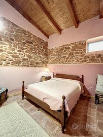 Situata all'ingresso del paese di Sennori, il casale in vendita proposto da Toscano Immobiliare è un'abitazione in pietra di civile di notevole bellezza. La proprietà, recentemente restaurata nel 2018 e certificata per gli impianti, si estende su una superficie interna di 300 mq e si trova a 400 metri di altitudine sopra il livello del mare, precisamente in Strada Vicinale Baldella. Il terreno circostante l'immobile è risultato delimitato e ben curato, estendendosi per 11 ettari, tra i quali 6 coperti da bosco. L'abitazione si compone di un ingresso su un piccolo disimpegno, una grande sala dotata di un bellissimo camino e due camere matrimoniali en-suite, con possibilità di realizzare dei soppalchi a vista. Una seconda sala, ancora più spaziosa, ospita il secondo camino e una terza camera matrimoniale en-suite. Adiacente al casale, una depandance di 40 mq dotata di un grande cortile esterno, un ingresso su sala con angolo cottura, bagno e camera da letto matrimoniale. L'immobile è dotato di un serbatoio idrico da 40'000 L, un serbatoio di accumulo con tenuta stagna di altri 40'000 L, cisterna di raccolta piovana da 300'000 L, nonché di un impianto di video sorveglianza. Al momento, l'abitazione viene utilizzata per eventi, cerimonie e rinfreschi, ma potrebbe essere acquisita come investimento a fini ricettivi, alberghieri o per chi predilige una vita immersa nella natura.