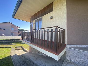 Esternamente la casa è circondata da un ampio parco di circa 1.600 mq completamente recintato con ingresso automatizzato.