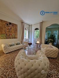 TIPOLOGIA: si tratta di una villa singola di impostazione classica, con richiami liberty, disposta su tre piani abitabili. Poco discosto garage di ampia metratura. L'area esterna piantumata è molto ampia e piacevole.