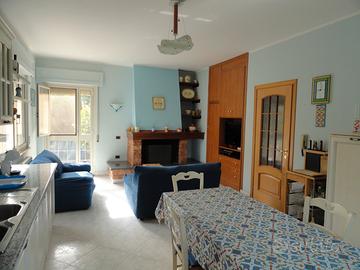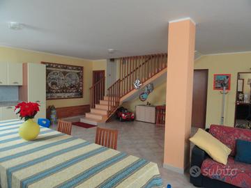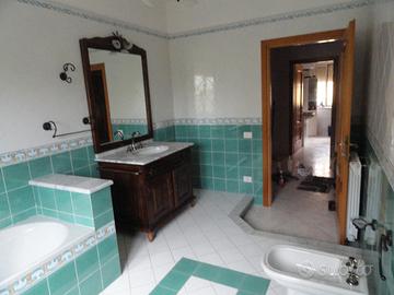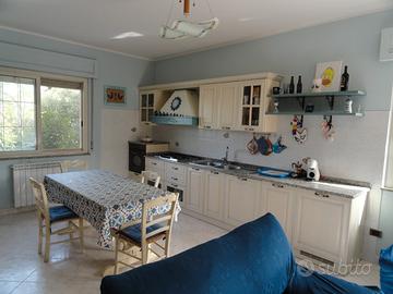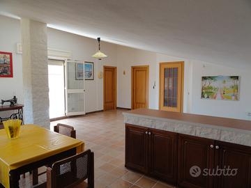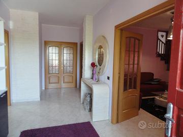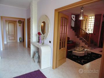 al piano rialzato vi è una terrazza che precede l'ingresso principale. Ci accoglie un ampio andito dove troviamo a sinistra la grande cucina e a destra il salone. La cucina abitabile molto spaziosa si presenta con un caminetto e due divanetti. Nella zona notte del piano rialzato ci sono tre camere da letto e due bagni ben rifiniti. Tutti gli ambienti sono molto grandi, spaziosi e luminosi.