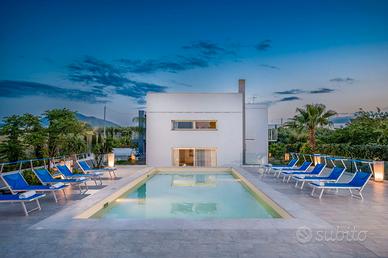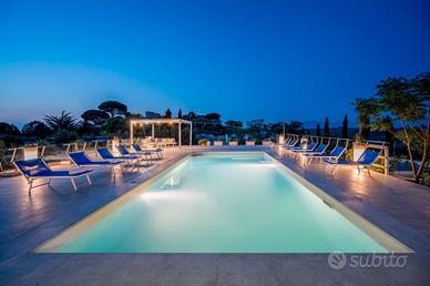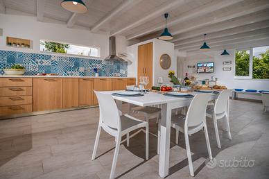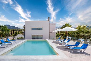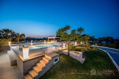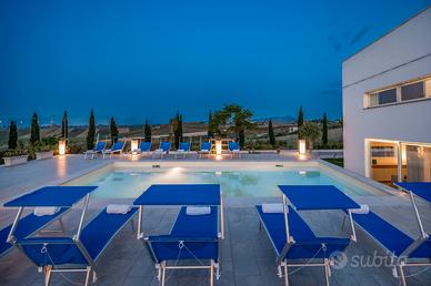 La Villa è composta da un'unità principale che può ospitare 8 persone in 4 camere da letto matrimonilai di cui una con il bagno en-suite e da una dependance che può ospitare comodamente ulteriori 4 persone in 2 camere da letto matrimoniali, di cui una camera con il bagno en-suite. Troverete inoltre una unità distaccata ma contigua a quella principale dove è presente una ulteriore sala da pranzo con un fantastico Bbq per le vostre grigliate e la disponibilità di un ulteriore bagno con doccia. Sono presenti nella strutura in totale 6 camere matrimoniali e 6 bagni tutti con doccia. La presenza di un divano nel soggiorno dell'unità principale permette inoltre di ospitare ulteriori 2 persone per un totale di 14.