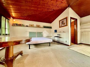 Salendo la scala, troviamo la camera mansardata praticabile con bagno en suite finestrato con doccia e terrazzo abitabile. Questa soluzione garantisce privacy e un ampio spazio sia interno che esterno per eventuali ospiti o semplicemente per chi vuole godere della tranq