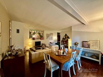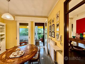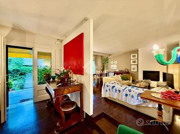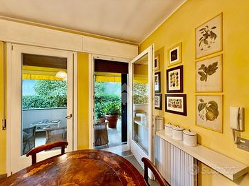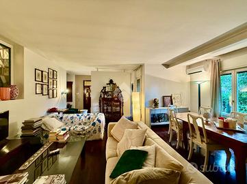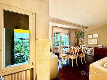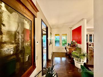 La zona giorno è presentata da un signorile ingresso che fa da snodo tra il doppio salone a sinistra, la scala interna che porta alla zona notte e alla sala da pranzo e cucina separata sulla destra. Tutti gli ambienti sono ariosi, luminosi e generosi nelle metrature.
