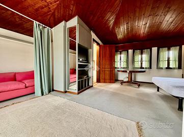 Tornando all'ingresso principale, una porta in prossimintà della scala ci conduce alla zona mansarda e alla taverna e garage.