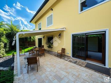 A completare la villa, una pompeiana con funzione posti auto coperti che può ospitare da due a tre auto a seconda delle dimensioni delle stesse.