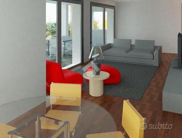 La villa è disposta su tre livelli ed è composta al piano terra dalla grande zona giorno che si affaccia sul giardino privato, sul porticato e sulla piscina. Facendo scorrere i grandi serramenti a vetro l'interno dell'abitazione si unisce alla zona esterna e diventa un unico ambiente da sfruttare in ogni occasione. La zona living è divisa in soggiorno (oltre 40 mq) e cucina abitabile (quasi 20 mq); al piano terra si trovano anche una camera da letto/ufficio di 12 mq, un bagno, un ripostiglio e la zona disimpegno.