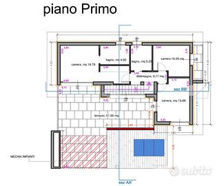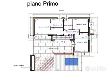 Al piano superiore è stata realizzata la grande zona notte: una camera da letto padronale con bagno privato, cabina armadio, due camere doppie, un altro bagno con finestra ed una terrazza di 60 mq garantiscono privacy e indipendenza dal piano terra.