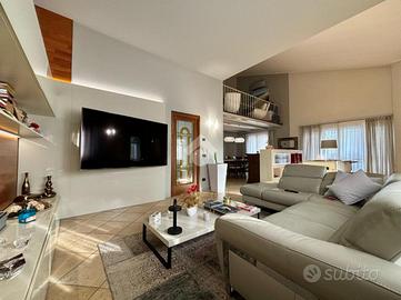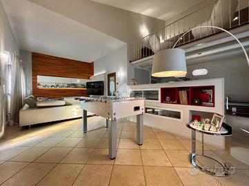 Il soppalco, che si affaccia sulla zona giorno, aggiunge un tocco di eleganza e ampiezza agli spazi, offrendo una vista panoramica sul soggiorno sottostante. Questo spazio di 13 mq può essere utilizzato come studio o area lettura.