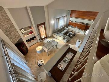 La villa è circondata da un'area esterna di 490 mq, con un'ampia area dedicata ad un magnifico giardino ben curato. Fiore all'occhiello dello spazio esterno è la piscina interrata con doccia esterna, ideale per godere delle giornate di sole in totale privacy, circondata da una pavimentazione in ceramica dove poter mettere i lettini prendisole e da portico di 21 mq con accesso diretto dalla zona giorno.